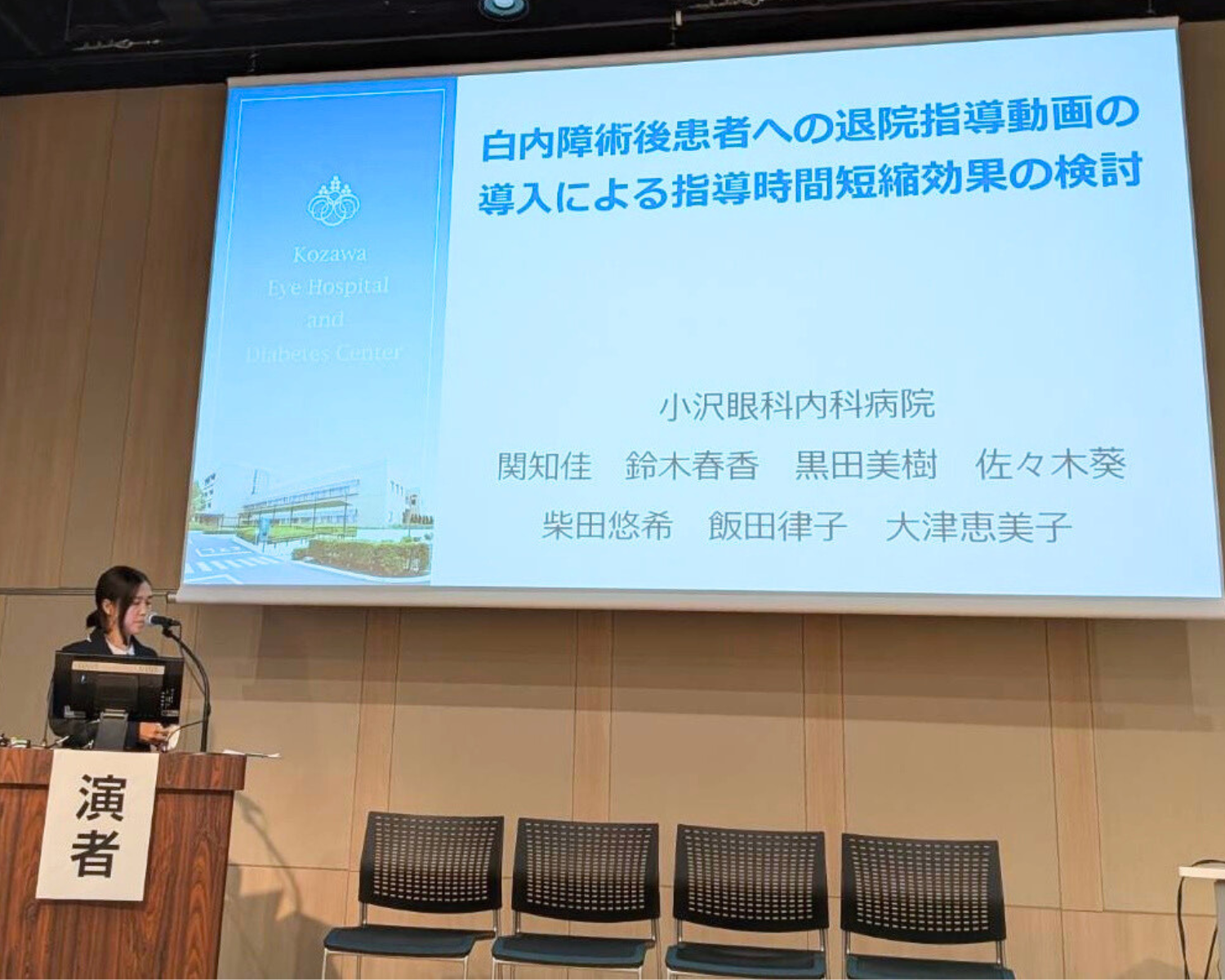 当院からは、川野辺徹 視能訓練士、川並蓮 視能訓練士、関知佳 看護師が一般口演にて発表いたしました。